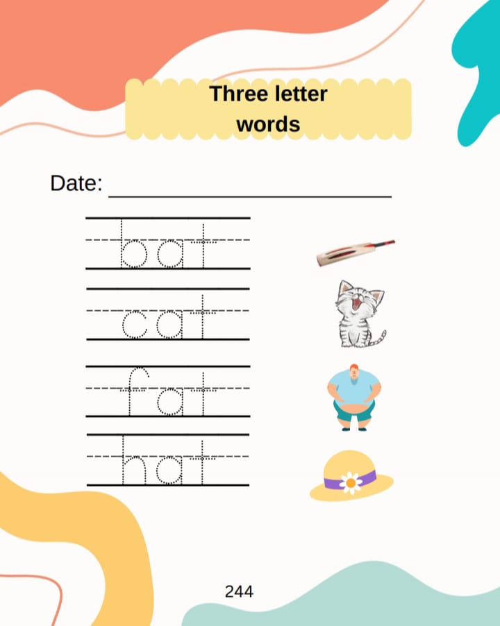 • Uppercase and Lowercase Practice: Children will learn to identify and trace both uppercase and lowercase forms of each letter.